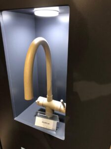 Смесители Hans Grohe. Среди многих функциональных и качественных особенностей этих смесителей скажу только то, что Hans Grohe разработана система насыщения воды кислородом, которая позволяет на 30% экономить воду. Для Узбекистана это важно. Ещё очень удобная особенность – включение воды нажатием кнопки. Вот представьте, руки в муке или в масле. Вы легким движением чистой части руки нажимаете на кнопку смесителя и  вода пошла.  Стоит дорого. Гарантия на смесители – 5 лет. Качество: немецкое.